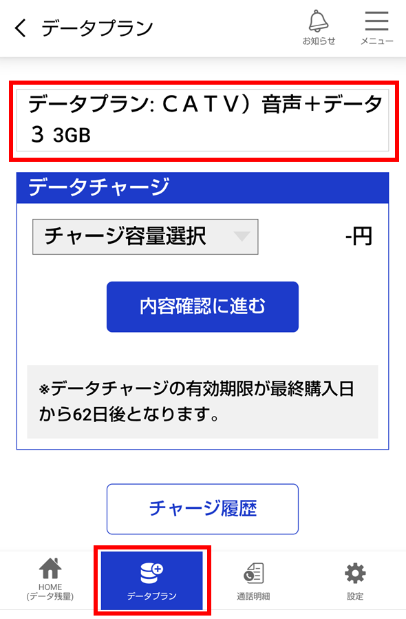 KCNモバイルの現在の契約コースを確認したい