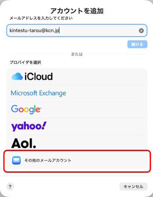 3.[プロバイダを選択]が表示されますので、「その他のメールアカウント」を選択します。