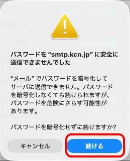 5-b.[パスワードを安全に送信できませんでした]が表示された場合は「続ける」ボタンをクリックします。