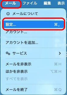 2-a.[アカウントを追加]画面が表示されない場合は、「メール」メニューから「設定」を選択します。