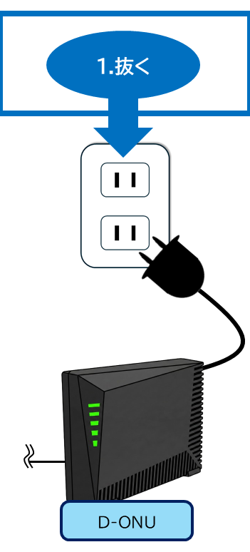 D-ONU(モデム)の電源をコードを抜きます。