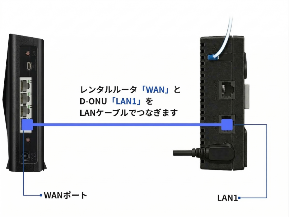 ルータとD-ONU(モデム)をLANケーブルでつなぎます。