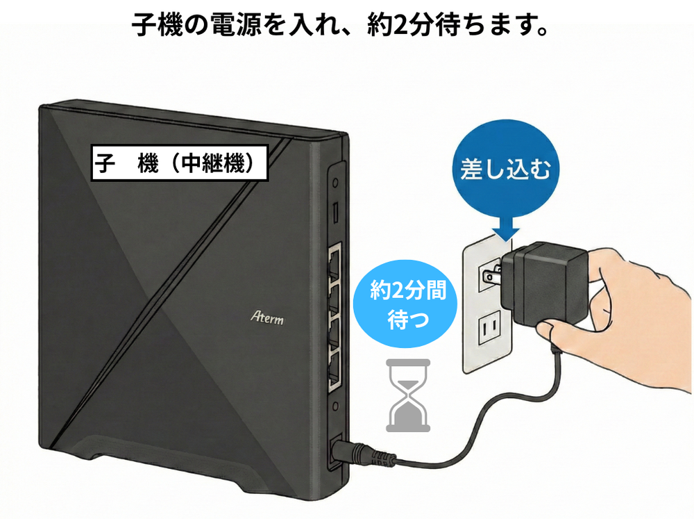 子機の電源を入れ、約2分待ちます。