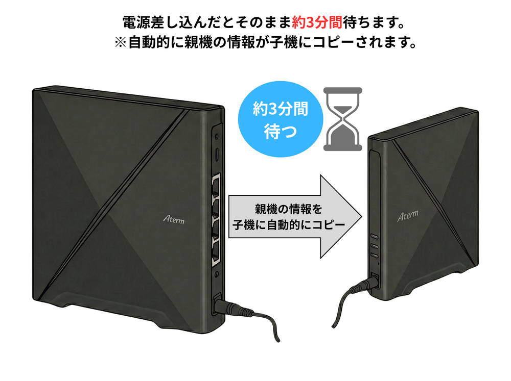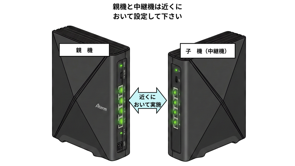 ※中継機の設定は、必ず親機と子機を近くにおいて実施します。