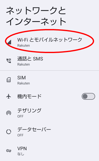 「Wi-Fiとモバイルネットワーク」または「インターネット」をタップする。