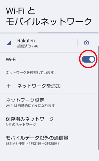 Wi-Fi の接続を確認する。