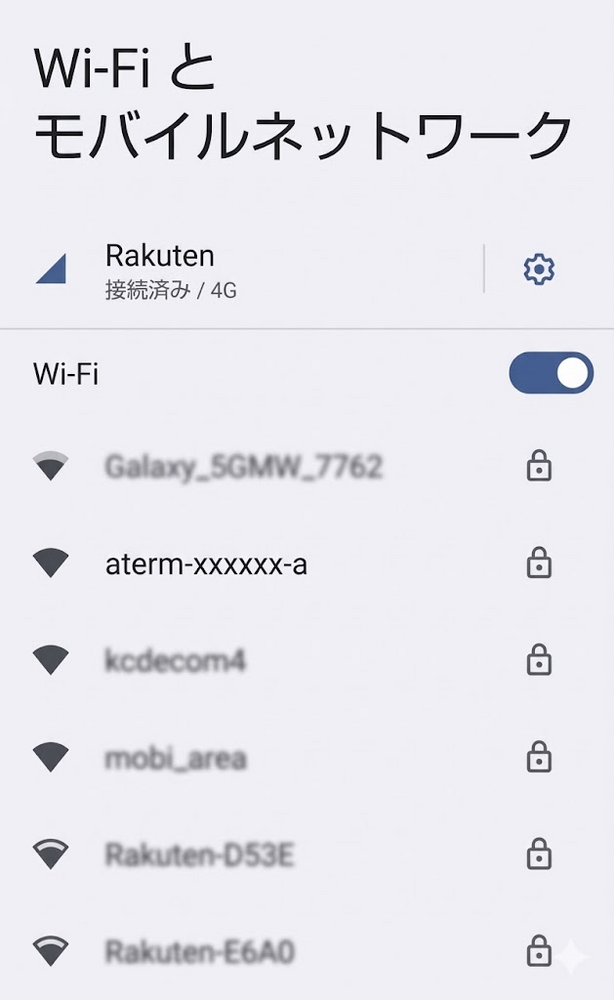 スマホやタブレットのWi-Fi接続のマークを確認します。