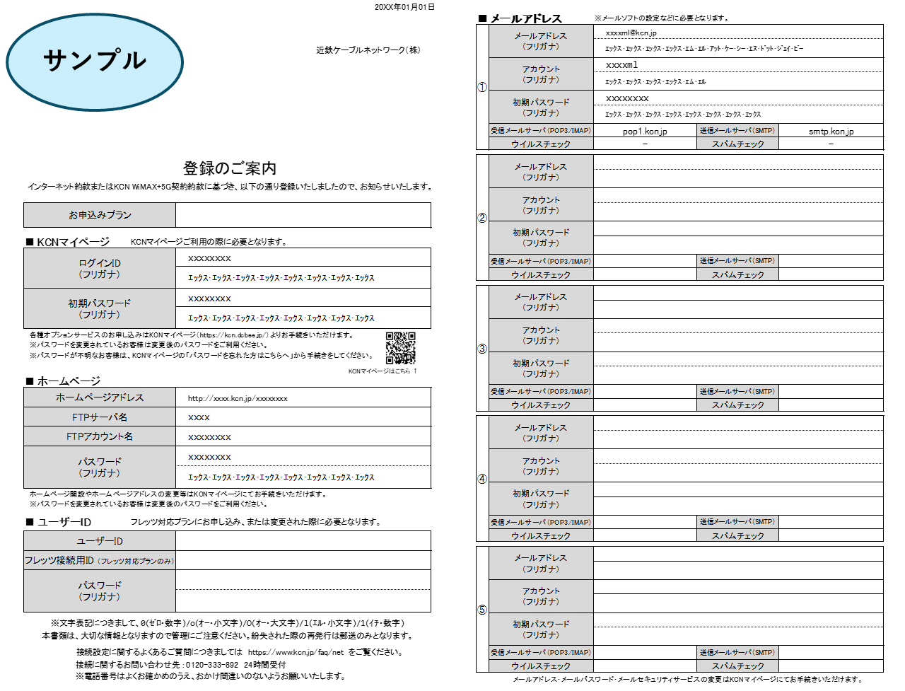 | ユーザー名 | 「登録のご案内」の「アカウント」 |