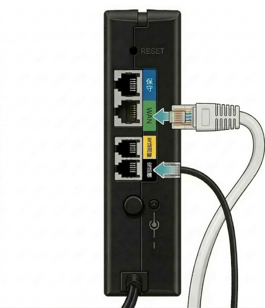 先ほどの逆順(D-ONU(モデム)→電話ターミナルアダプタ→電話機)に電源ケーブルを差し込んでください。