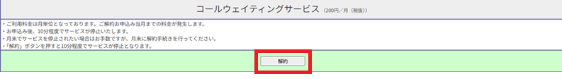 【STEP2】コールウェイティングサービスの「解約」をクリックする。