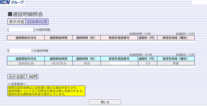 通話明細は「Kブロード光電話フュージョンライン光電話ご契約変更ページ」からご確認ください。