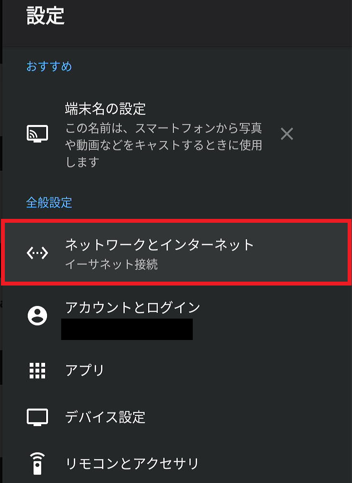 『ネットワークとインターネット』を選択し決定ボタンを押す。