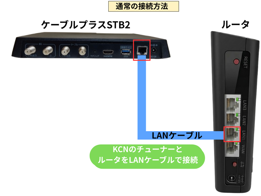 STBとルーターをLANケーブルで接続する。