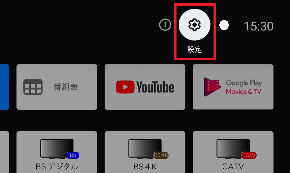 画面右上の『設定』を選択し決定ボタンを押す。