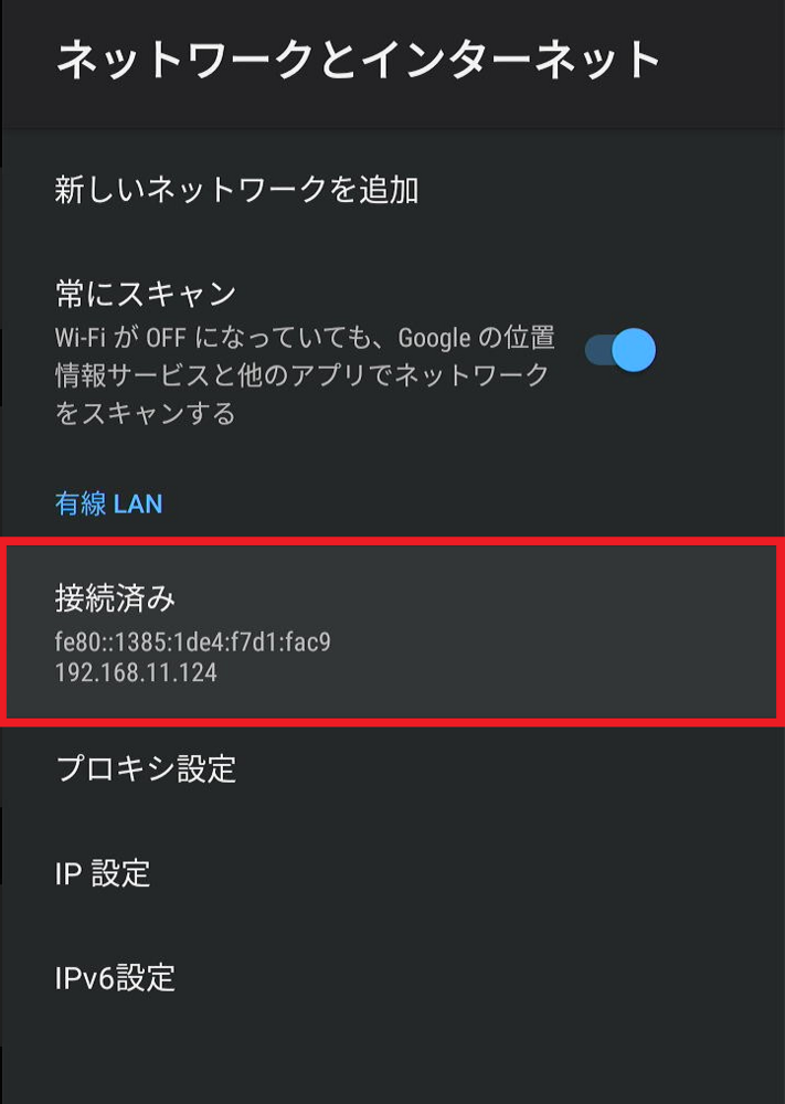 ※Wi-Fiがオンになっていると有線接続でのネットワーク接続ができません。