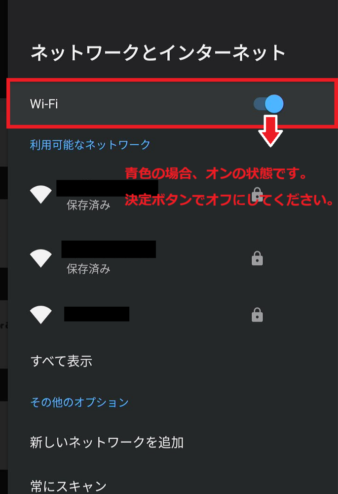 【STEP4】『ネットワークとインターネット』選択後、Wi-Fiを選択しオフにしてください。