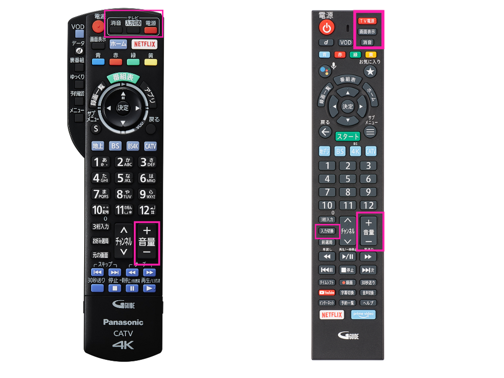 KCNのリモコンで『テレビ電源』『音量』『入力切替』などが操作できない。