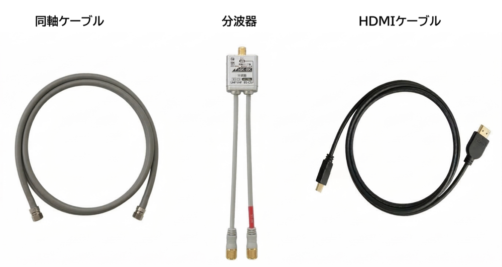 同軸ケーブル、HDMIケーブル、分波器