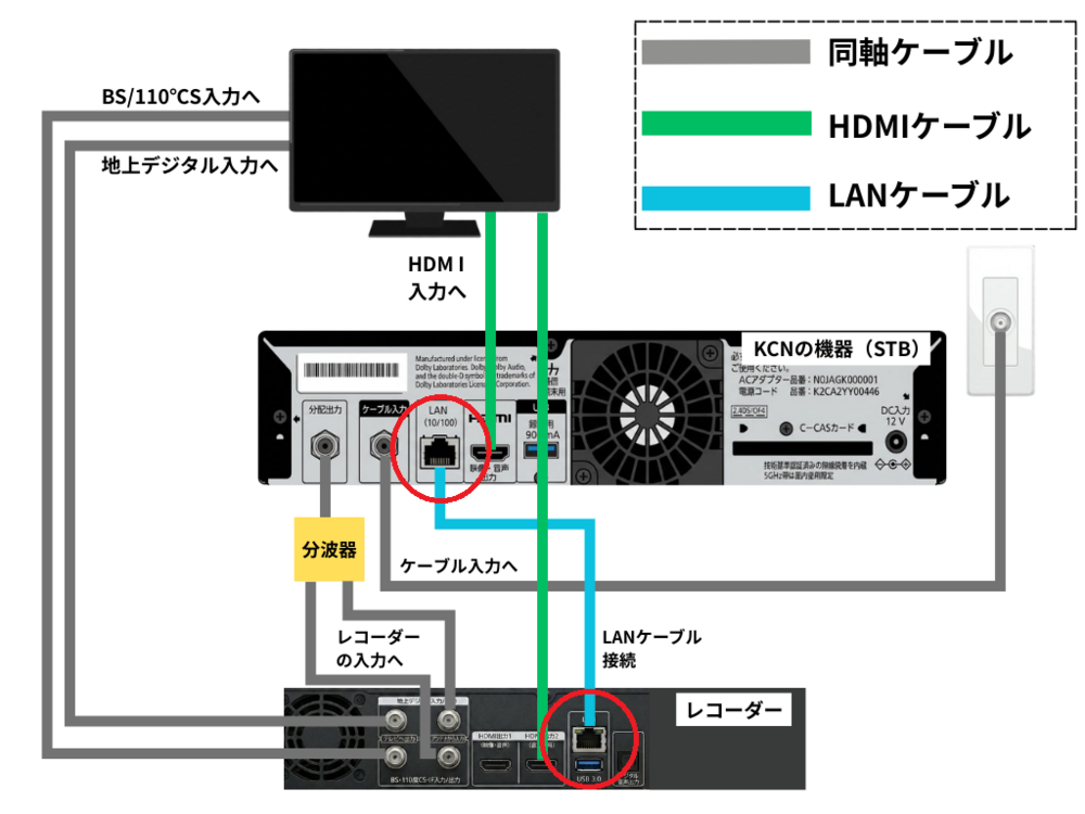 上記で解決しない場合、STBと録画機にLANケーブルがきちんと接続されているかご確認ください。