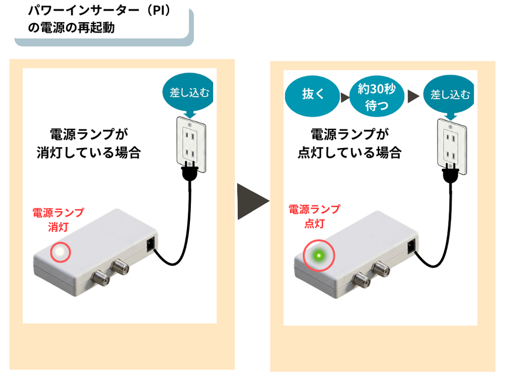 ・パワーインサーター(PI)の電源ランプ点灯の確認、再起動