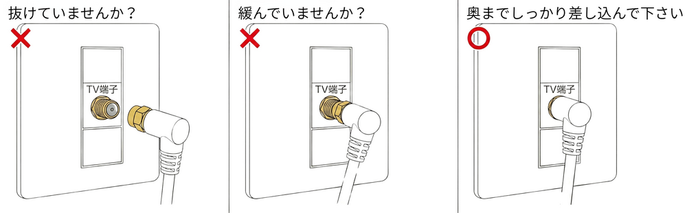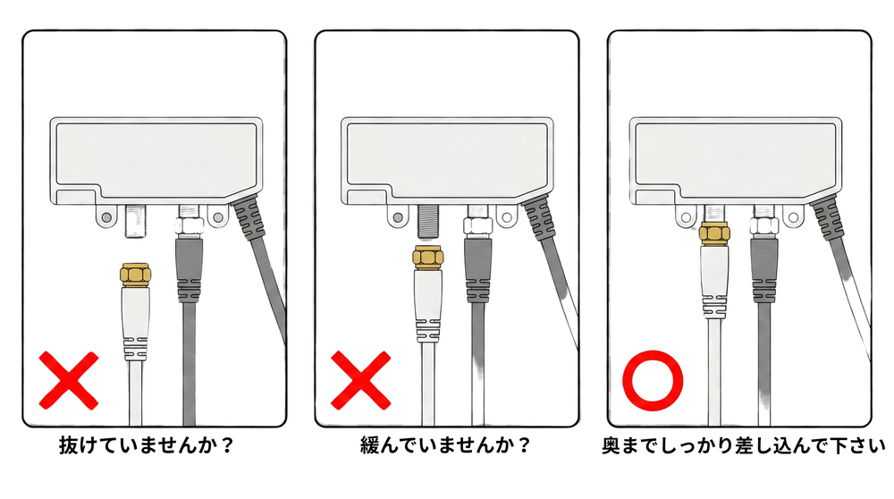 ※同軸ケーブルがネジ式の場合は、先端が緩んでいないかもご確認ください。