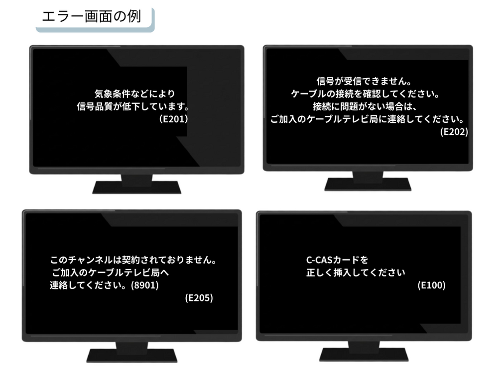 テレビ画面に「E201」などのエラー番号やメッセージが表示されている