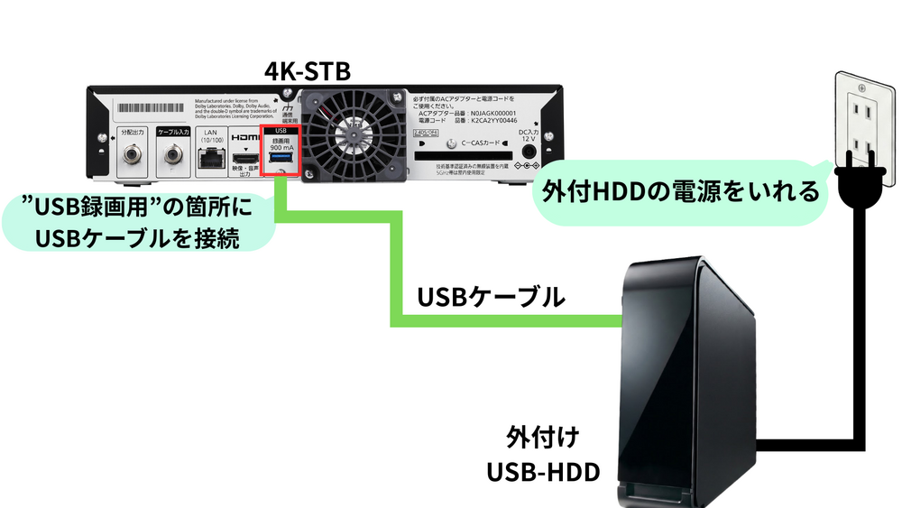 外付けハードディスクとKCNのテレビの機器(STB)をつなぎたい(パナソニック製STB)