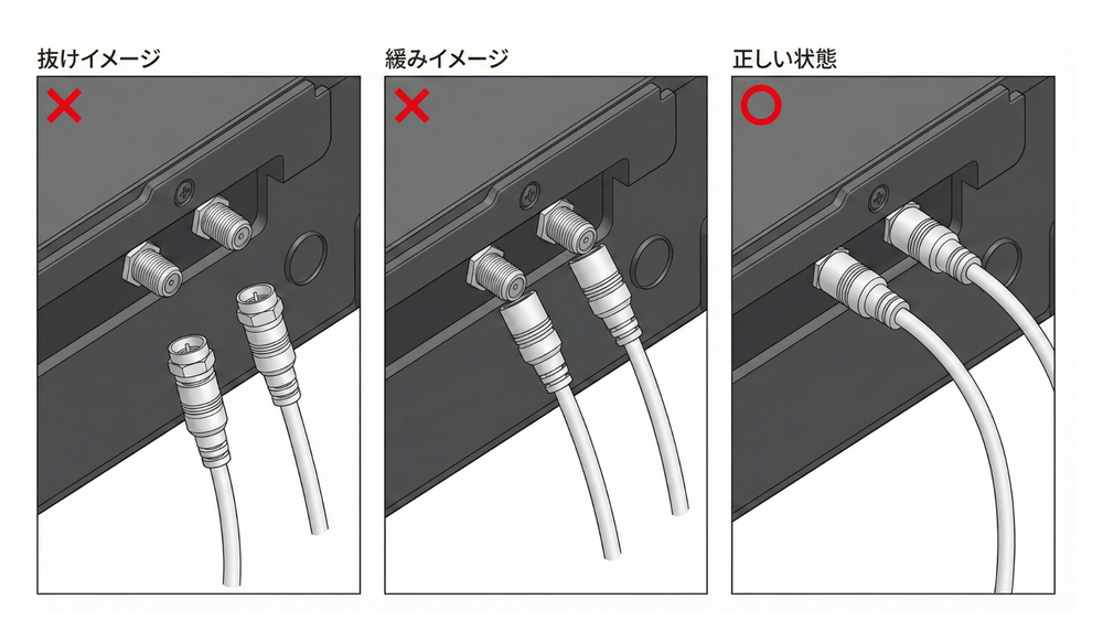 ・STB/録画機の同軸ケーブルの抜け・緩みがありませんか?