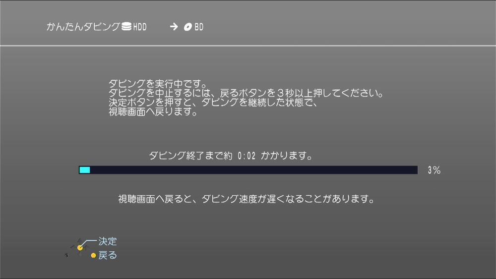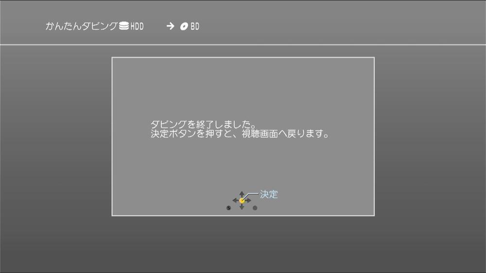 『ダビングが終了しました。』と表示されたら決定ボタンを押してください。