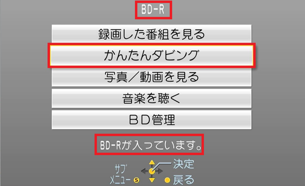 ※ブルーレイディスクを入れた場合『BD-Rが入っています。』と表示される。