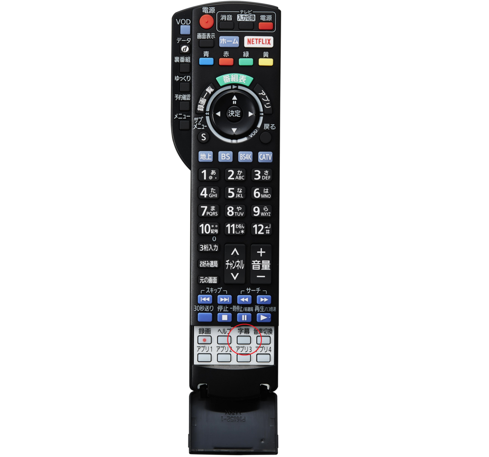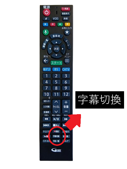 リモコン下部のフタを開け、字幕ボタンを押してください。